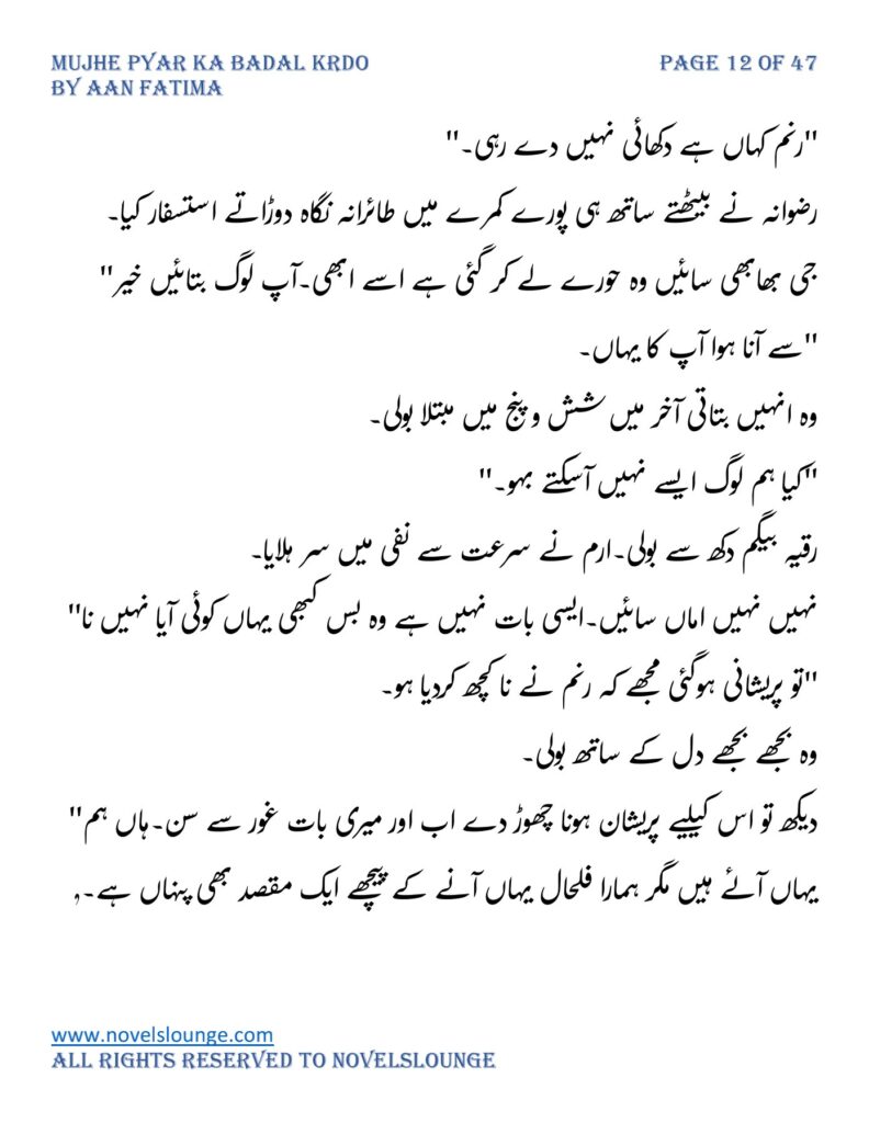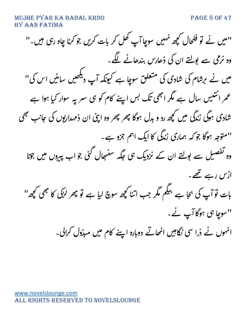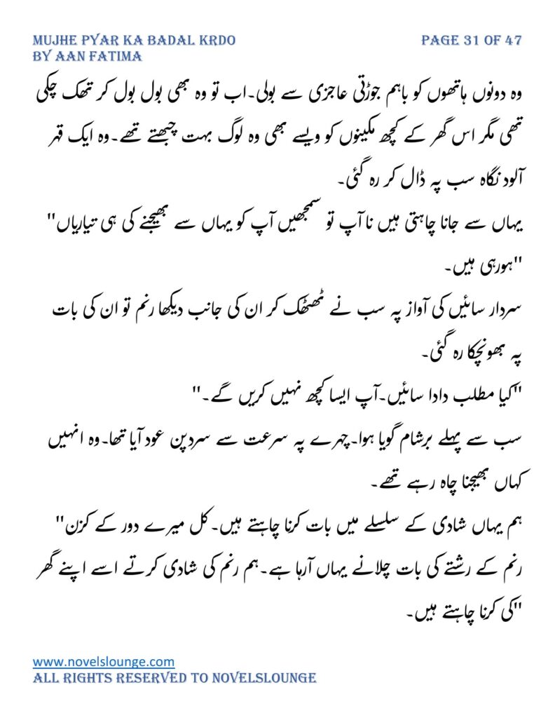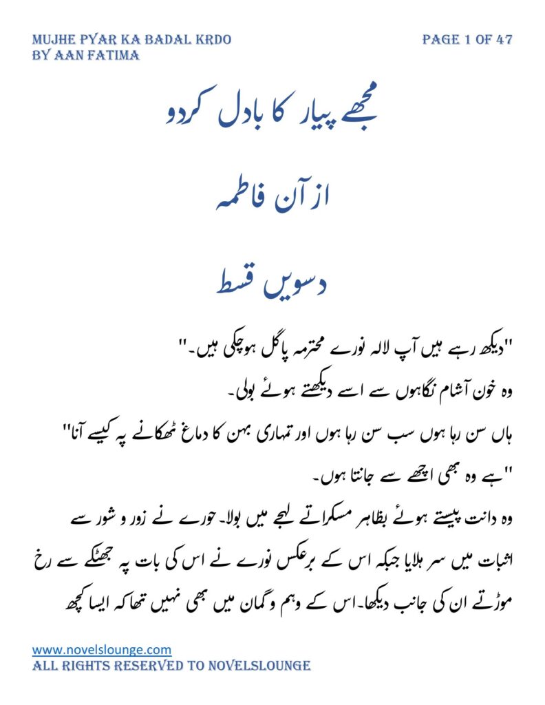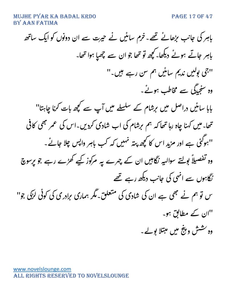 Mujhe pyar ka badal krdo,written by Aan Fatima,social romantic novel,village based czn marriage based,full of suspense and thrill and fun.