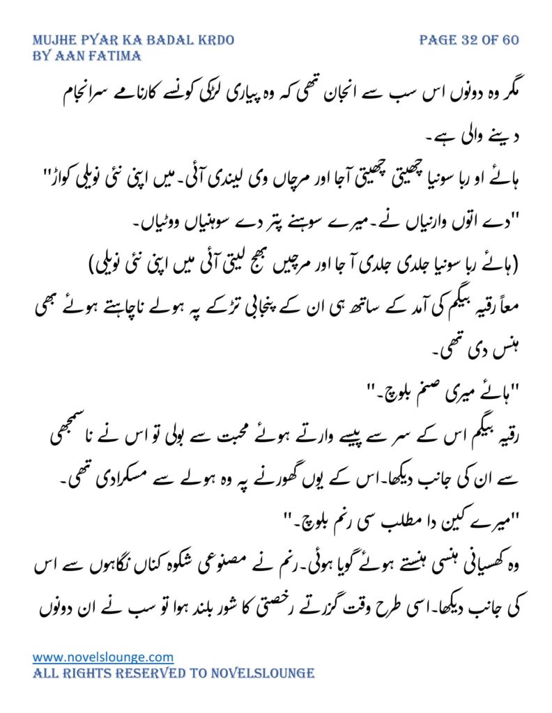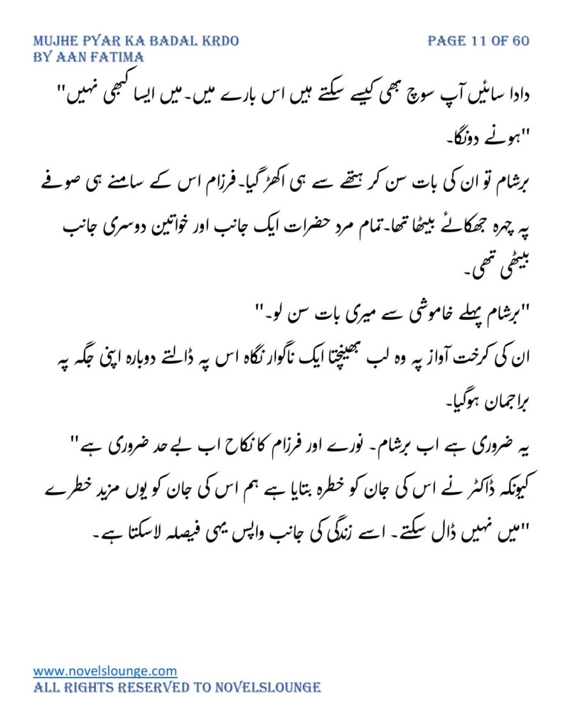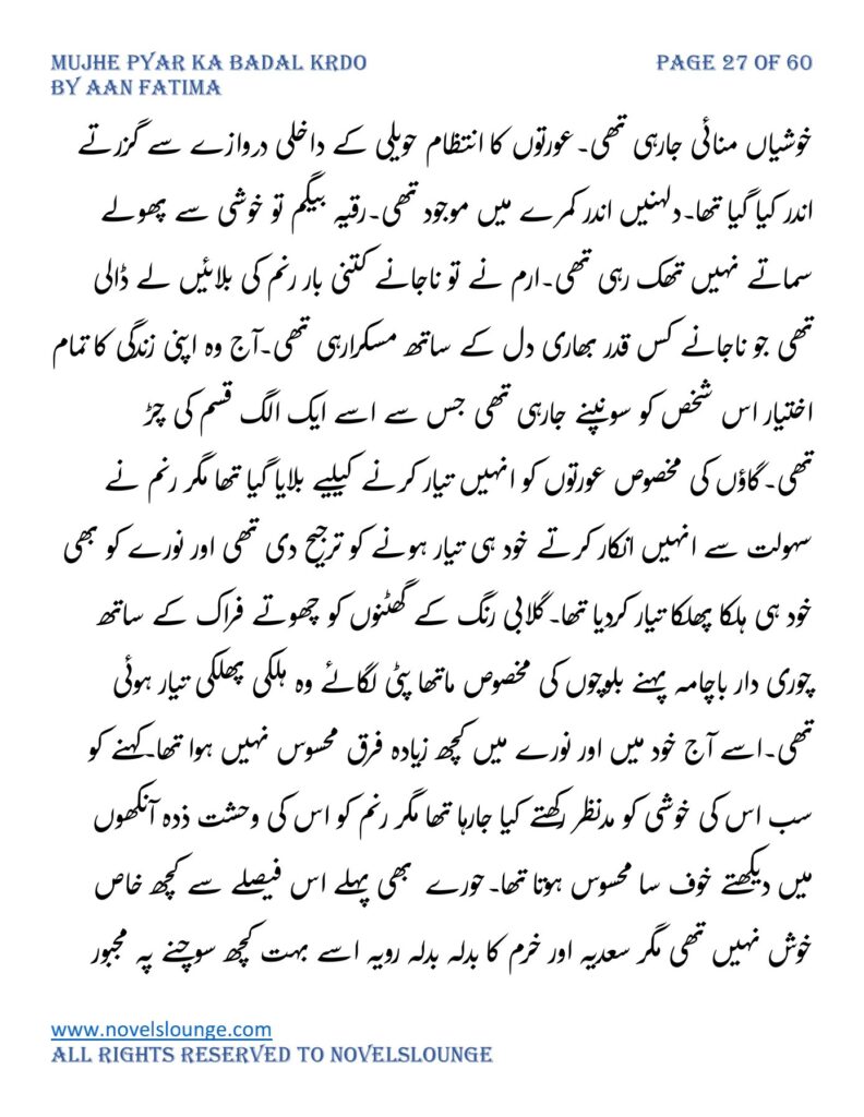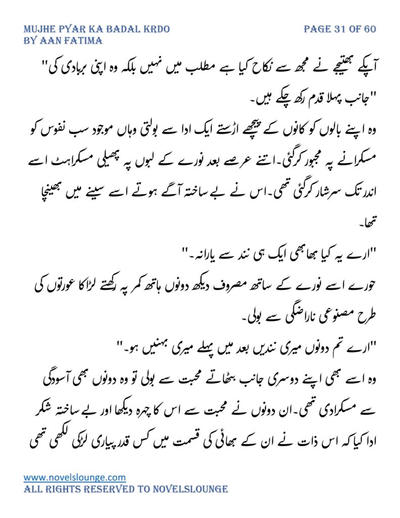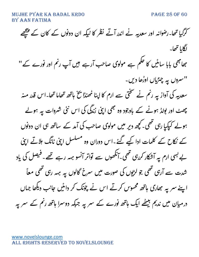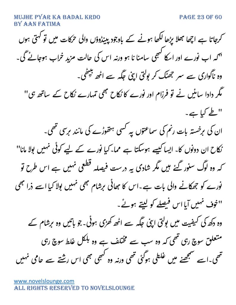 Mujhe pyar ka badal krdo,written by Aan Fatima,social romantic novel,village based czn marriage based,full of suspense and thrill and fun.