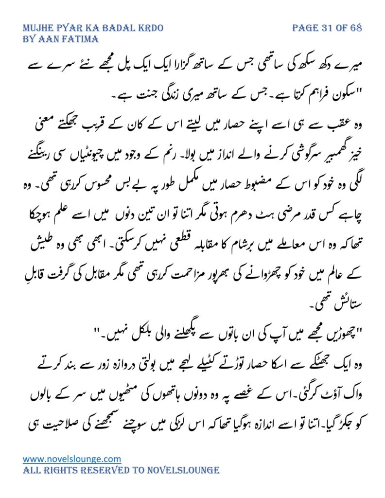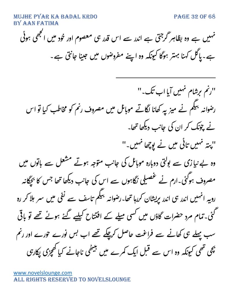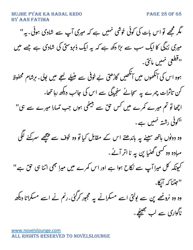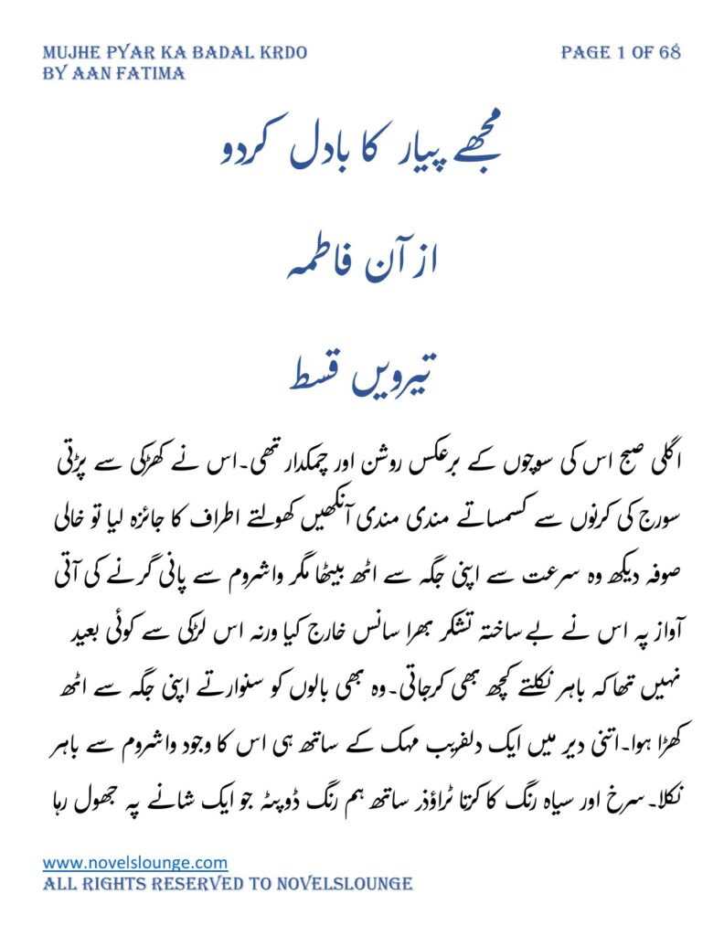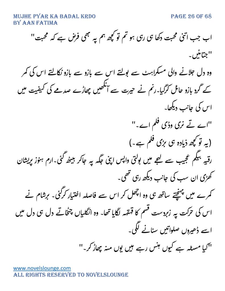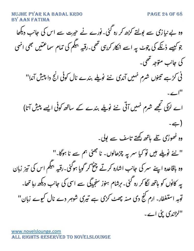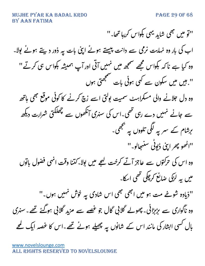 Mujhe pyar ka badal krdo,written by Aan Fatima,social romantic novel,village based czn marriage based,full of suspense and thrill and fun.