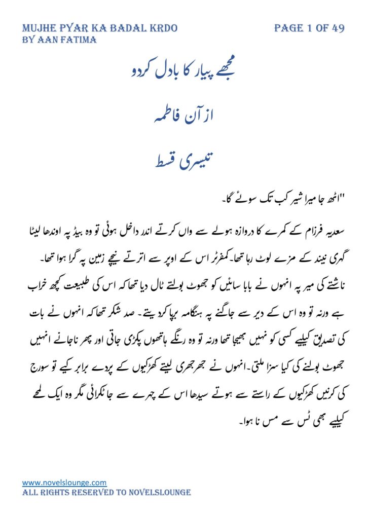 mujhe-pyar-ka-badal-krdo-by-Aan-Fatima-episode-3-online-reading-urdu-novel-2022