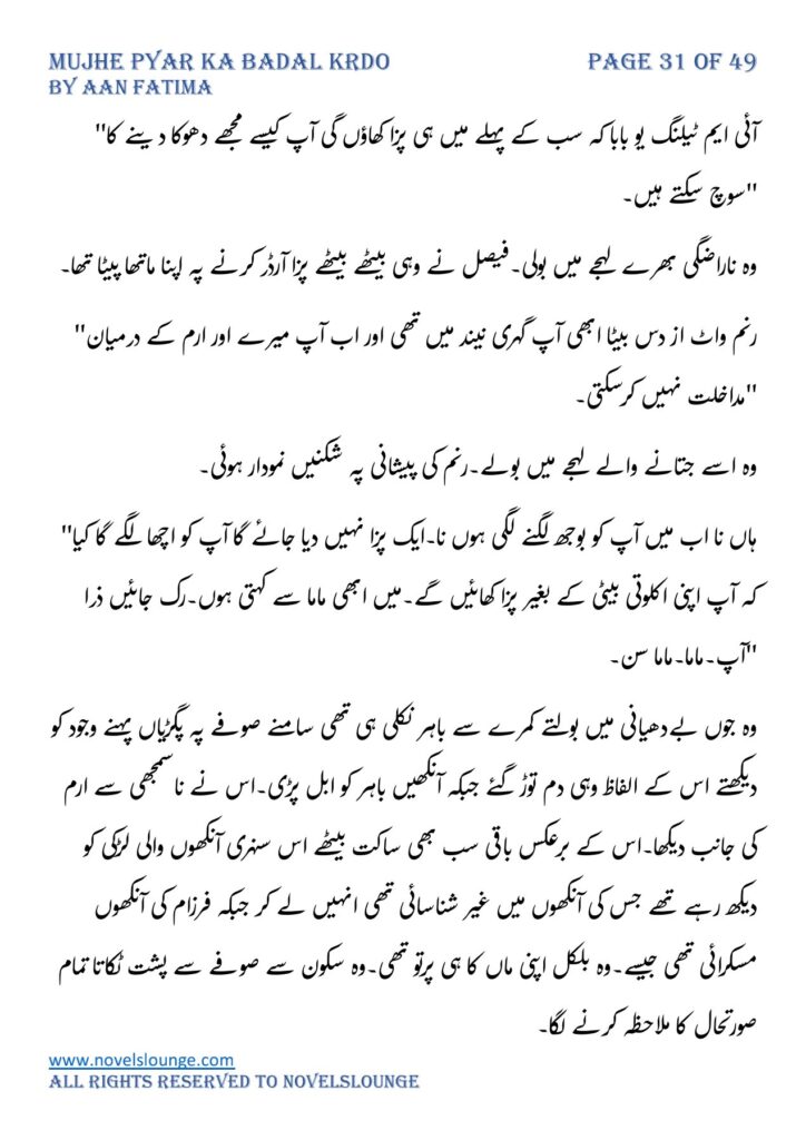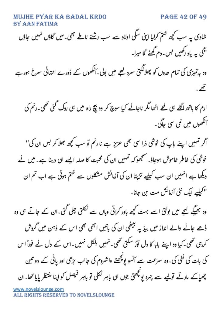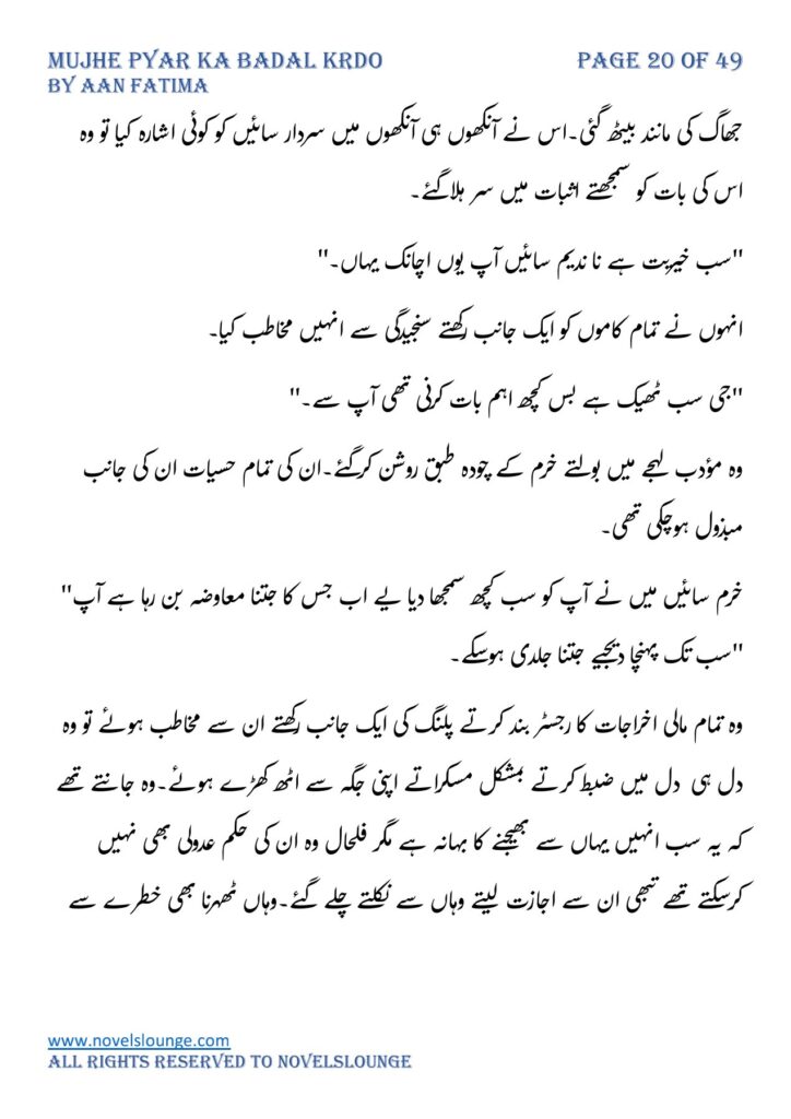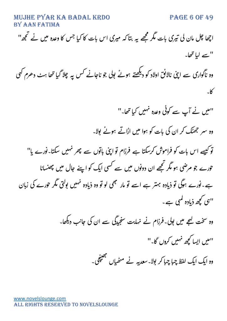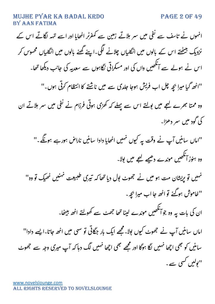 Mujhe pyar ka badal krdo,written by Aan Fatima,social romantic novel,village based czn marriage based,full of suspense and thrill and fun.