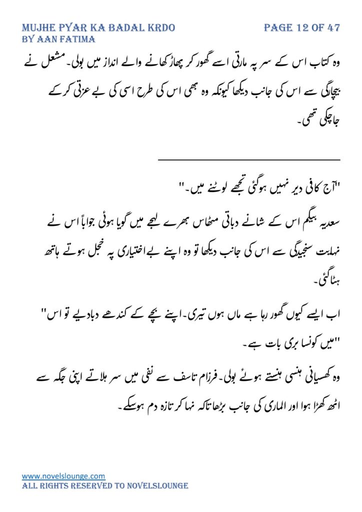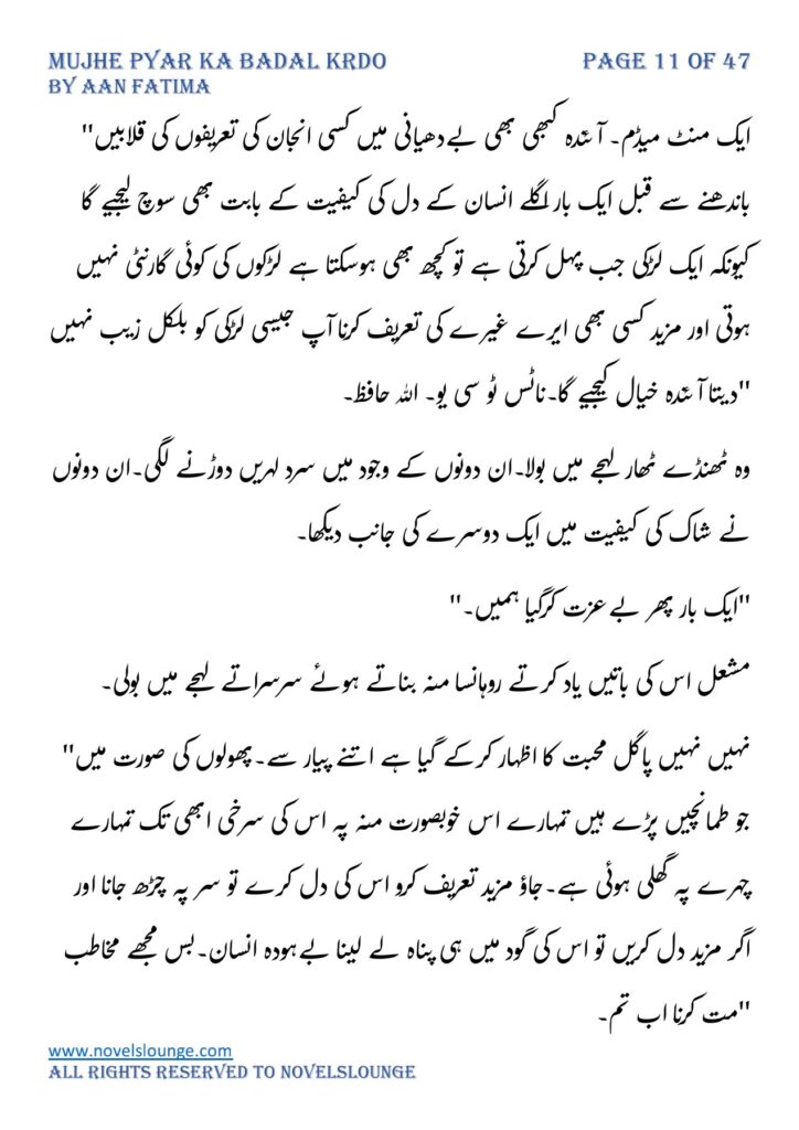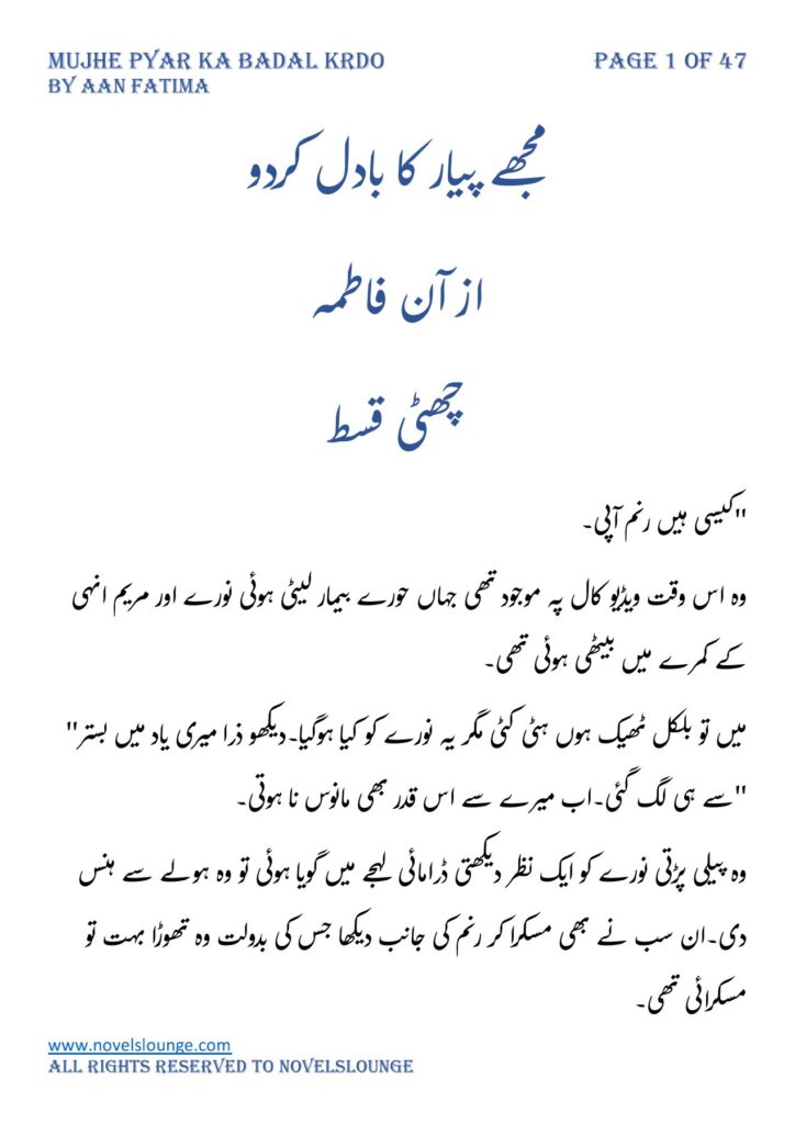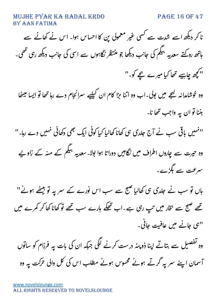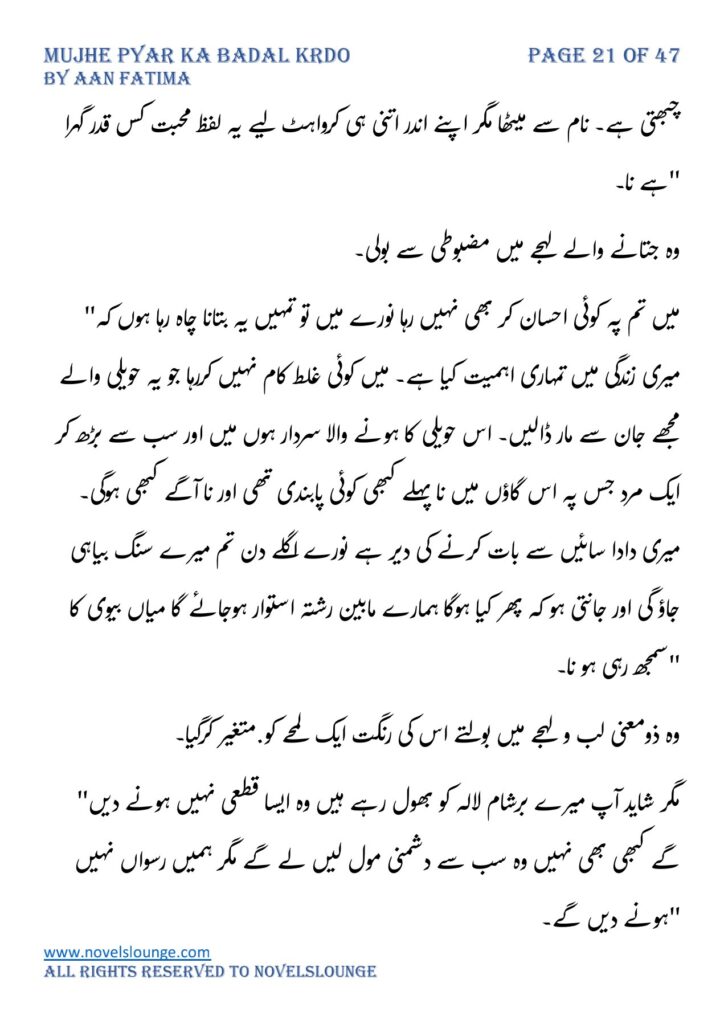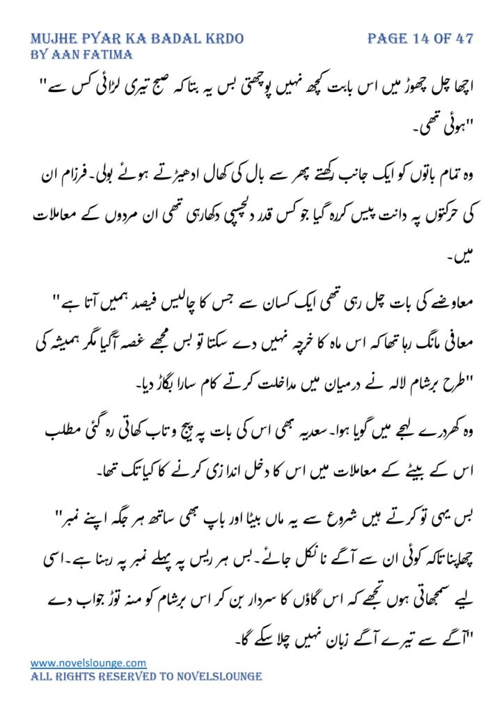Mujhe pyar ka badal krdo,written by Aan Fatima,social romantic novel,village based czn marriage based,full of suspense and thrill and fun.