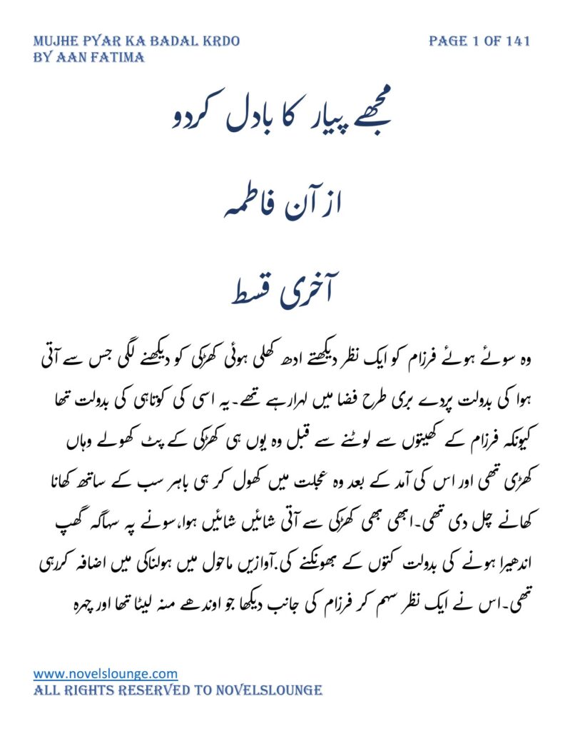 Mujhe pyar ka badal krdo,written by Aan Fatima,social romantic novel,village based czn marriage based,full of suspense and thrill and fun.
