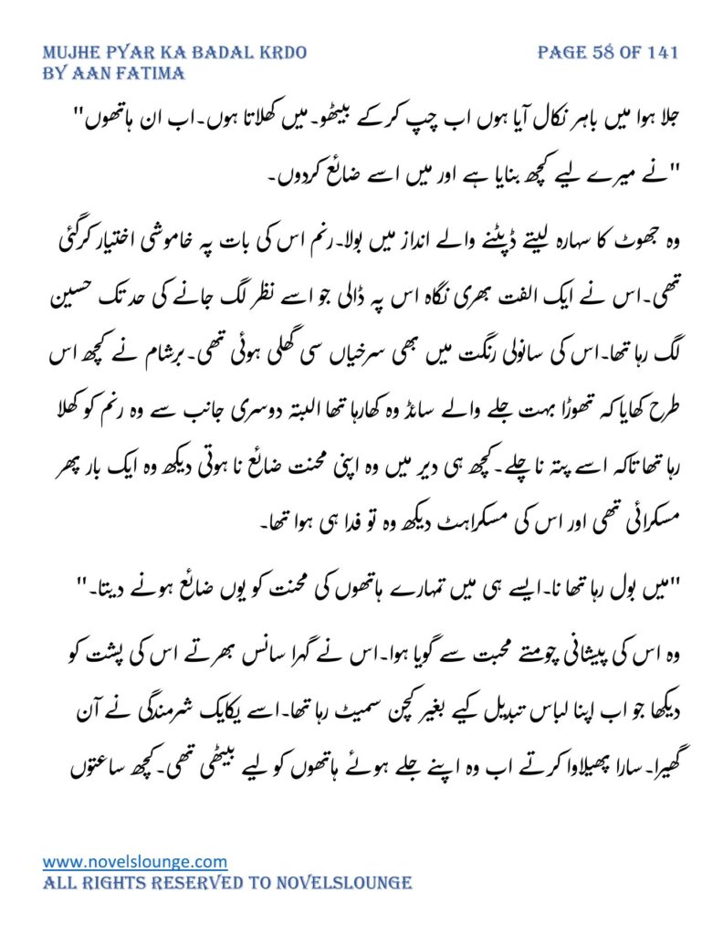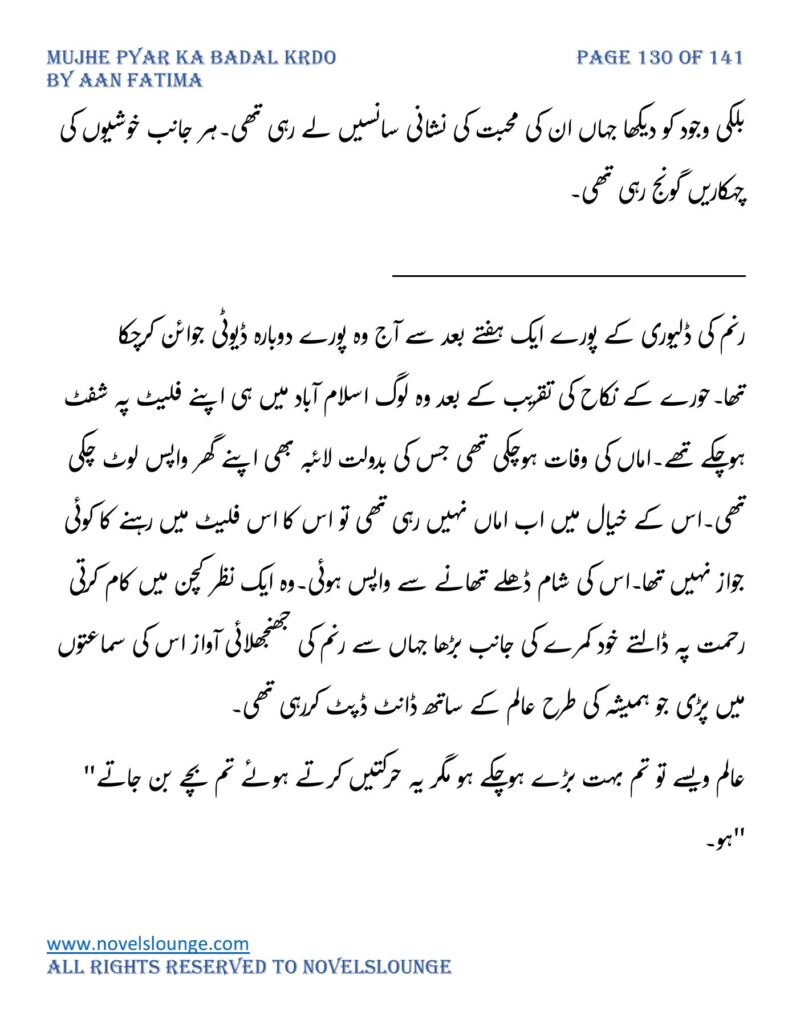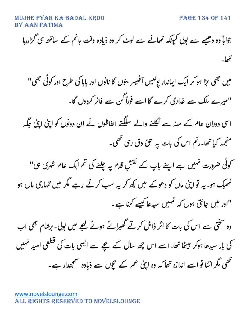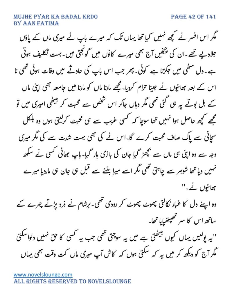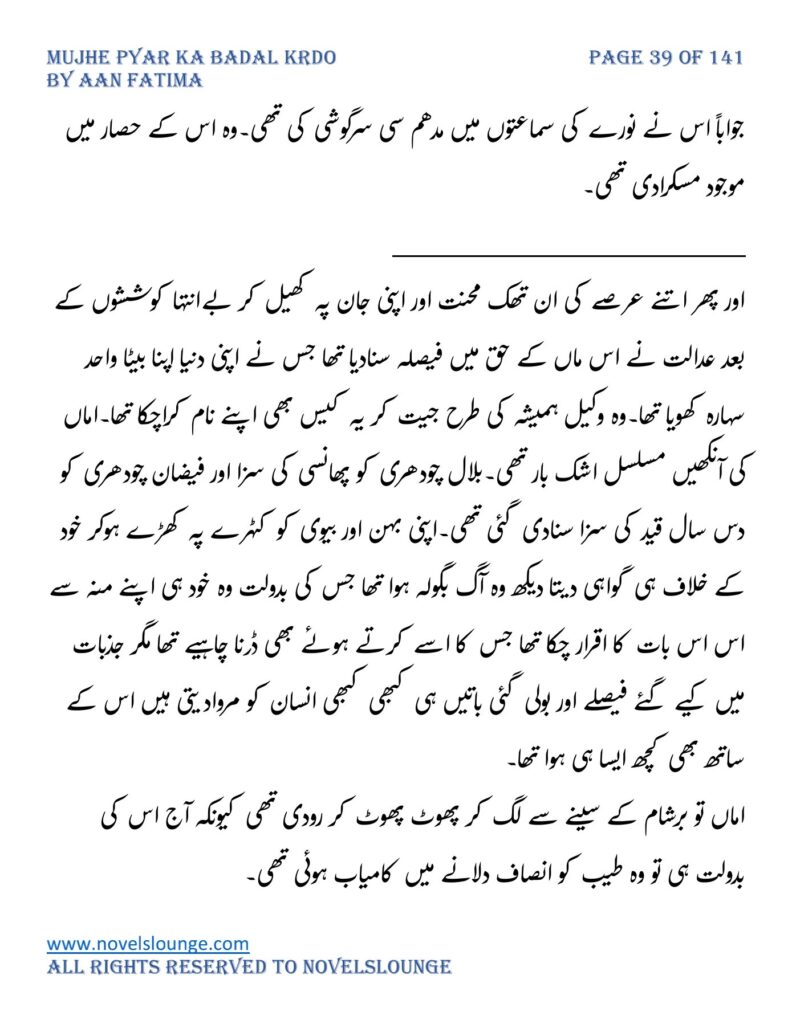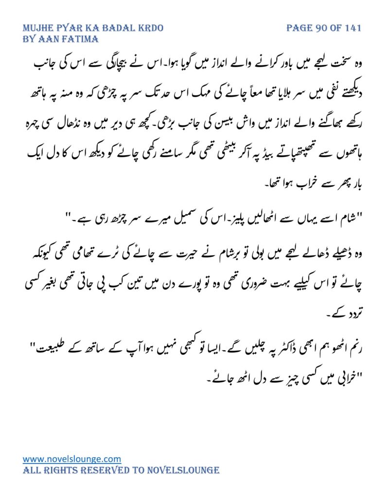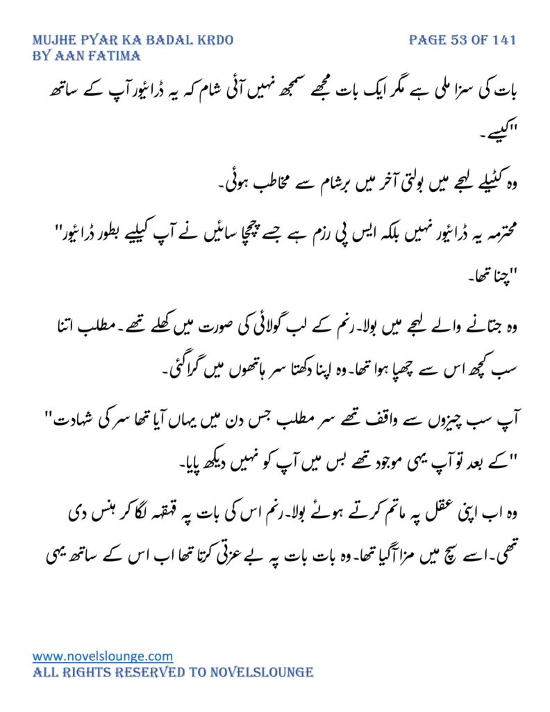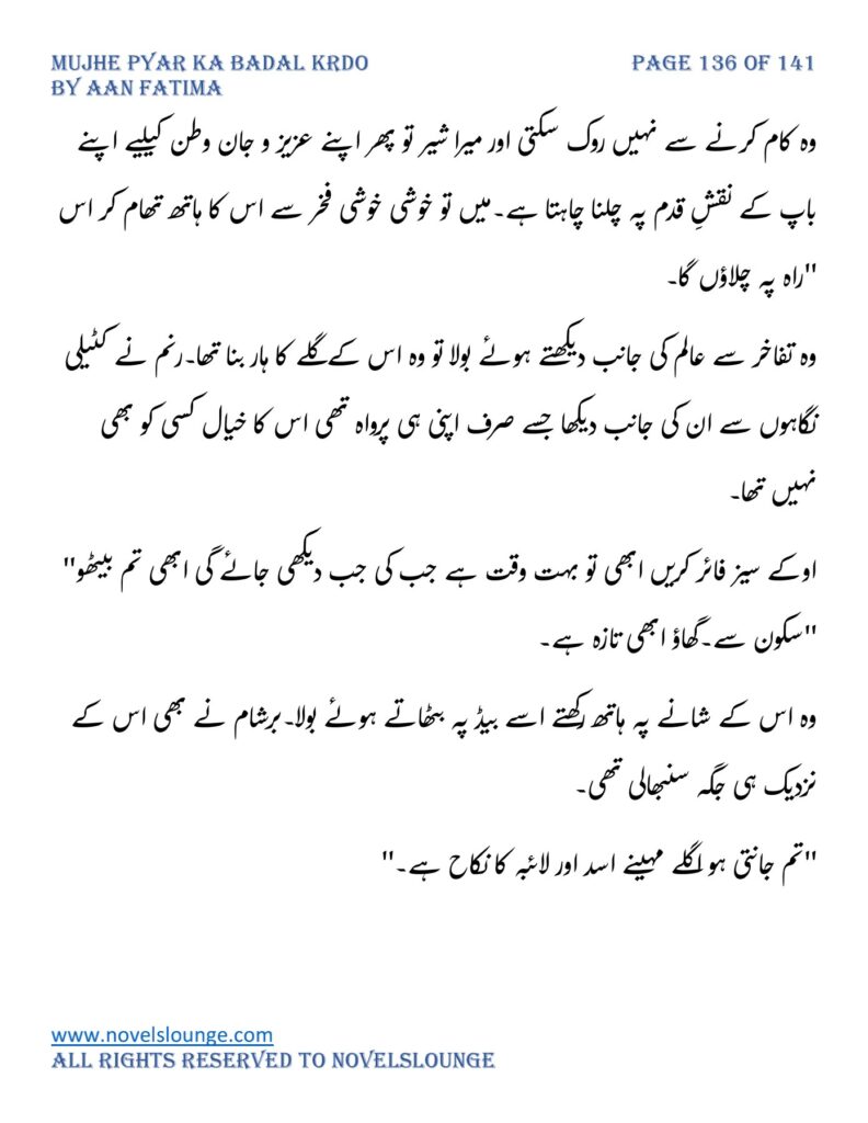 “محبت تو آپ کو بھی تھی ارے نہیں وہ محبت نہیں محبت کے نام پہ دھبا تھا جو آپ نے میرے کردار پہ لگانے میں ایک لمحہ نہیں لگایا اور مجھے حویلی والوں کی نگاہوں میں رسواں کردیا۔میرے کردار کے ساتھ میرے چہرے پہ بھی کالک ملی ہے آپ نے سب کی موجودگی میں۔آپ تو مرد کہلانے کے لائق بھی نہیں ہے۔بس نام ہی مردوں والا کام نہیں۔”